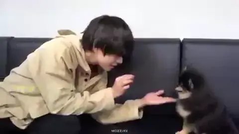 #bts vcs s茫o muito fofos brincando com a cachorra de #V #jimin #jk 馃挒馃挒馃挒馃挒