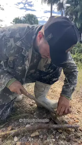 “Simplicidade que funciona! No mato é assim… uma forquilha vira bancada, uma lima na mão e o machado fica no fio. Quem vive no mato aprende a desenrolar com o que tem!” #VivênciaDoMato #VidaNoMato #Machado #AfiandoMachado #VidaNaNatureza