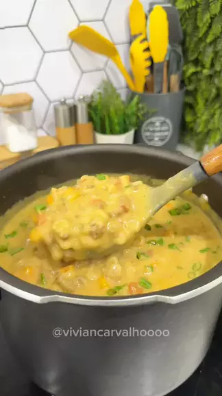 Sopa de carne com creme de batata ✨🤤 .. . Ingredientes 1 gomo de calabresa 500g de carne moída 100g de macarrão argola 400g de batata 1 cenoura 1 cebola 2 dentes de alho 1 tomate 1 caixa de creme de leite Cheiro verde a gosto Páprica, cominho, tempero completo, alho em pó, sal, caldo de carne, colorau a gosto . #sopa #sopadecarne #cremedebatata #receita #receitafacil
