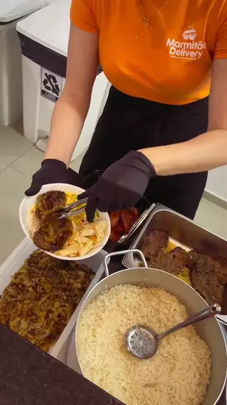montando uma marmita para o almoço #marmita #almoço #Comida #cozinha #carne