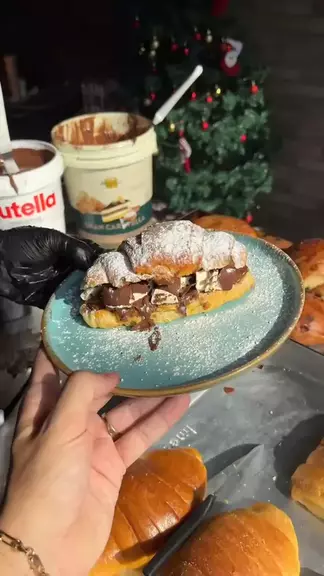 croissant recheado na hora #doce #croissant #chocolate #Comida