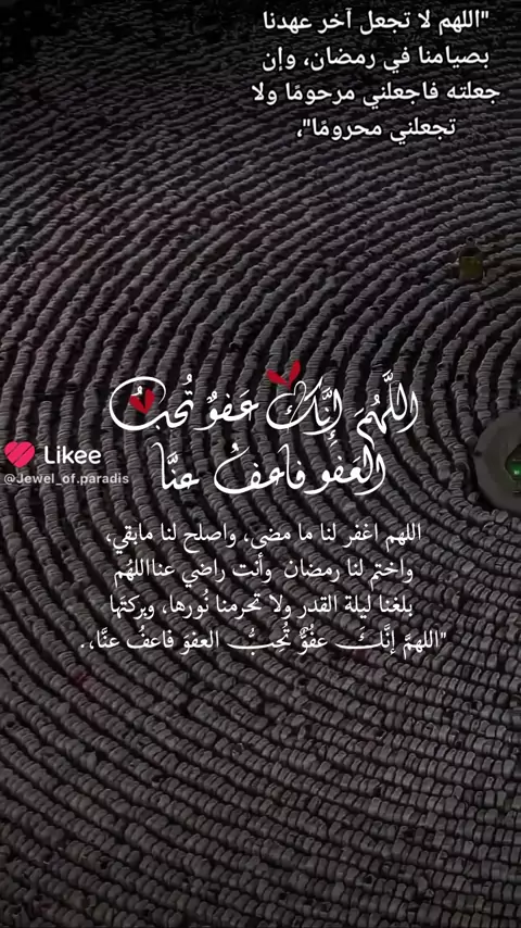 "اللهم يا رب إنها آخر جمعة في رمضان، لا تخرجنا من رمضان إلا وقد أصلحت حالنا، ويسرت أمورنا، وغفرت ذنوبنا، وتقبلت صيامنا".