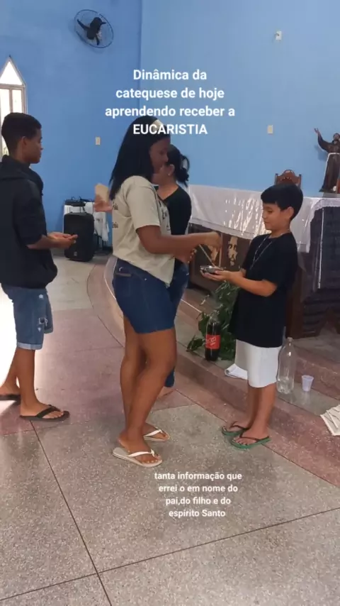 Dinâmica da catequese aprendendo receber a EUCARISTIA...foi tanta informação que acabei errando o em nome do pai, do filho e do espirito santo mais depois eu consertei viu gente foram quase 4 horas de catequese .....