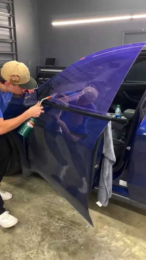 Pasang tabir surya ungu romantis di mobil. More