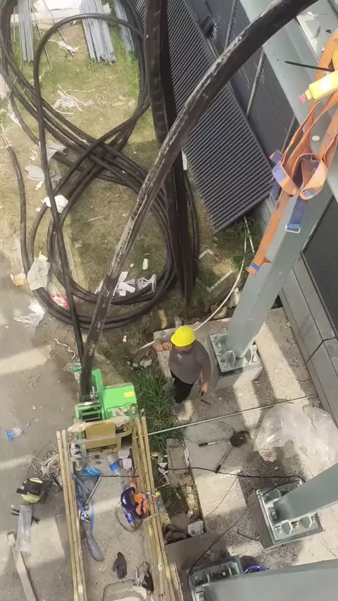 Use the cable conveyor to pull the cable. Let's see how happy the worker is. π #cablelaying #cablepulling #cablelayinginnovation #cableconveyor #cable