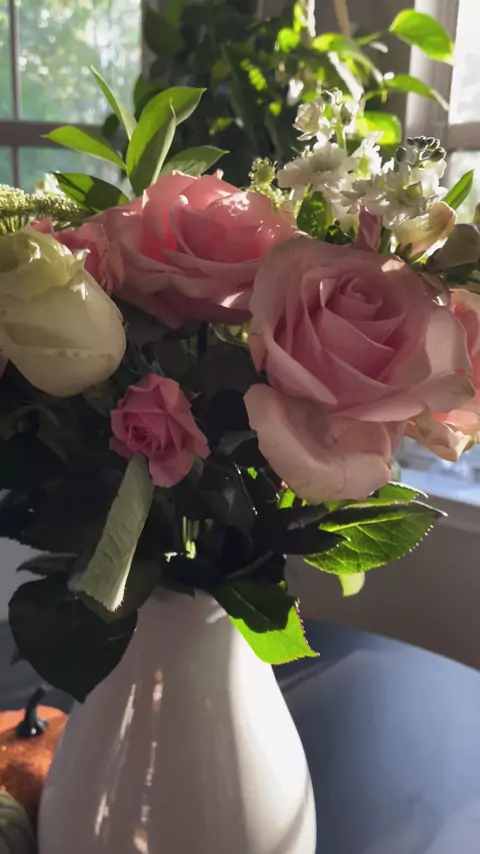 Good afternoon! What a beautiful day — even more so with the sunshine lighting up my kitchen. I’ve always wanted to say that just seeing a farm and hearing the birds makes me feel calm. I’ve always loved flowers, and receiving them from my husband makes me even happier. The peaceful view of nature always fills my heart with joy and serenity.”