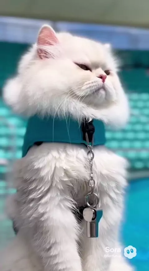 A white cat works as a dolphin trainer. #whitecat #funnycat #dolphintrainer
