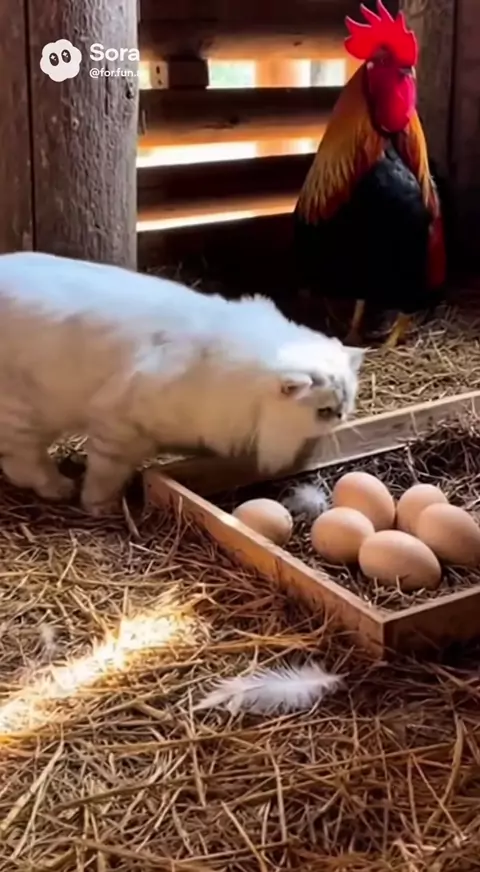 #whitecat #funnycat #cat #shortsvideo #chicken
