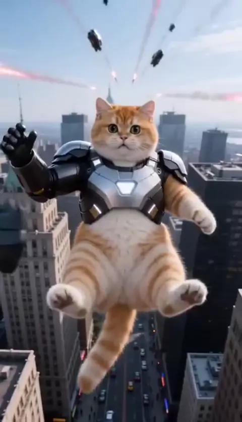 Wait for the landing... The coolest transformation ever! ππ― #ironcat #avengers #ironman #catsoftiktok #orangecat
