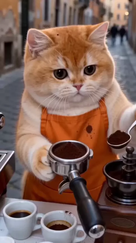 Met the cutest barista on the streets of Italy. Would you drink this "Paw-tte"? ☕️🐱✨ #catsoftiktok #espresso #coffeevibe #fyp #trending