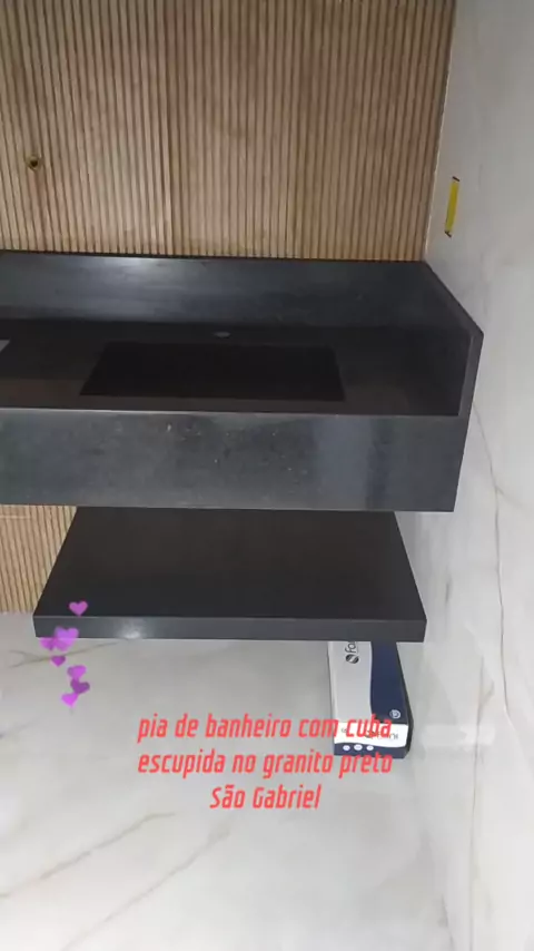 pia de banheiro com cuba escupida no granito preto São Gabriel