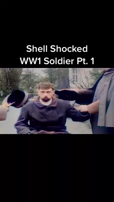 Clipe colorido de um soldado da Primeira Guerra Mundial com choque de escudo em 1918 # WW1 # shellshock # history