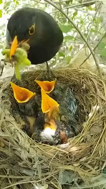 mamãe pássaro alimentando seus filhotes 😍