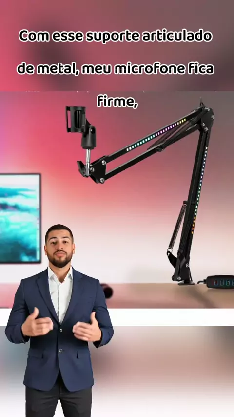 Suporte de microfone que transforma seu setup gamer de vez! #GamerSetup #SuporteDeMicrofone #IluminacaoRGB #StreamingPro #EquipamentoGamer