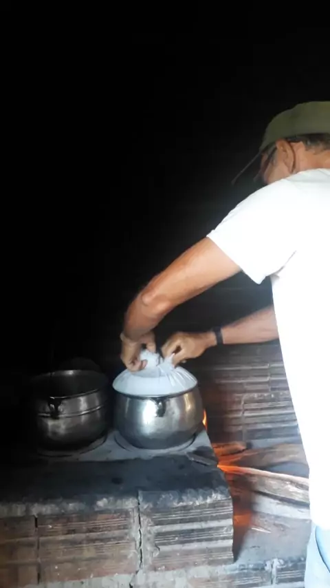 Fazendo pão de milho no prato