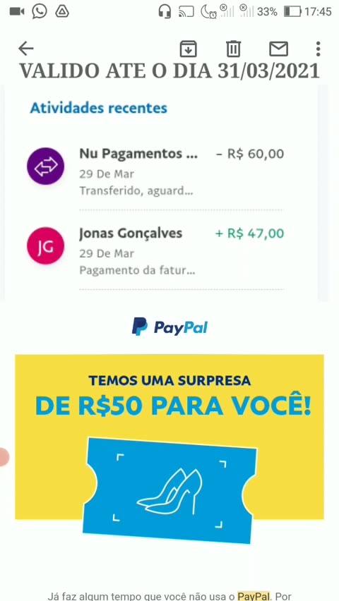 URGENTE! GANHE R$50 REAIS NO PAYPAL#renda #dinheiro #paypal