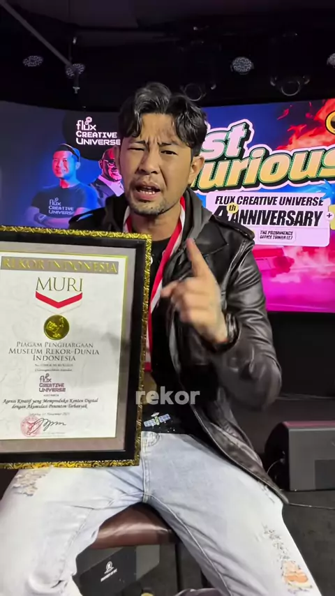 Hadiah buat @fluxcreativeuniverse di tahun ke 4...kita berhasil mendapatkan rekor @muri_org sebagai "agensi kreatif yang memproduksi konten digital viral dengan jumlah views terbanyak" . Bangga pokoknya dengan semua pencapaian yang sudah dilewati..let's go F4st&Furious!! . #fluxcreativeuniverse #idenyaflux #viralvideo #rekormuri