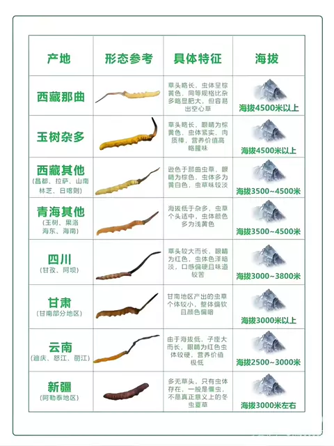 A picture allows you to understand the cordyceps of various production areas # Tibet origin, Qinghai production area, Gansu production area,