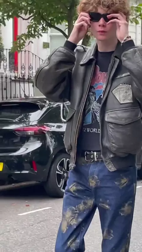Flight jacket with Bowie tee##fashion#model#styleinspo