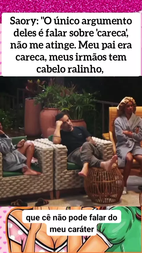 Saory: "O único argumento deles é falar sobre 'careca', não me atinge. Meu pai era careca, meus irmãos tem cabelo ralinho, no que me ofende isso? Falam da minha aparência porquê não podem falar do meu caráter." #AFazenda