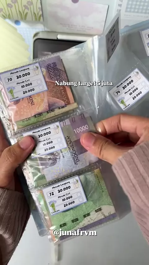 Update 3 tabungan sekaligus ✨ 1. Tabungan target 40 jutaan di binder pattern flower brown : link di bio no 34 2. Tabungan target 5 juta di saving album, link di bio no 40 3. Tabungan kalender setahun, link di bio no 27 Nabung kaya gini seru banget, kamu buktiin sendiri deh. #nabung #savingchallenge #sinkingfund #bindernabung #asmr