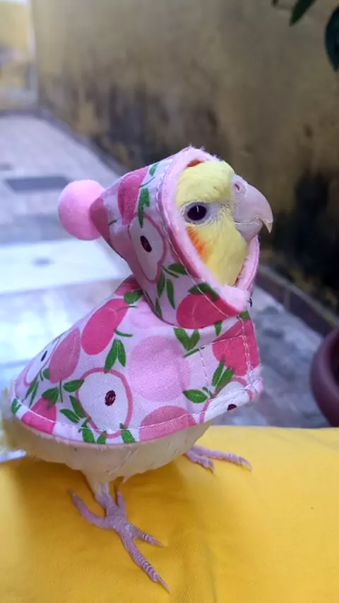 o frio chegou por aqui serena já está com seu belo casaco❤️ #calopsitaporamor #maedecalopsitas #euamocalopsita #calopsita🐦