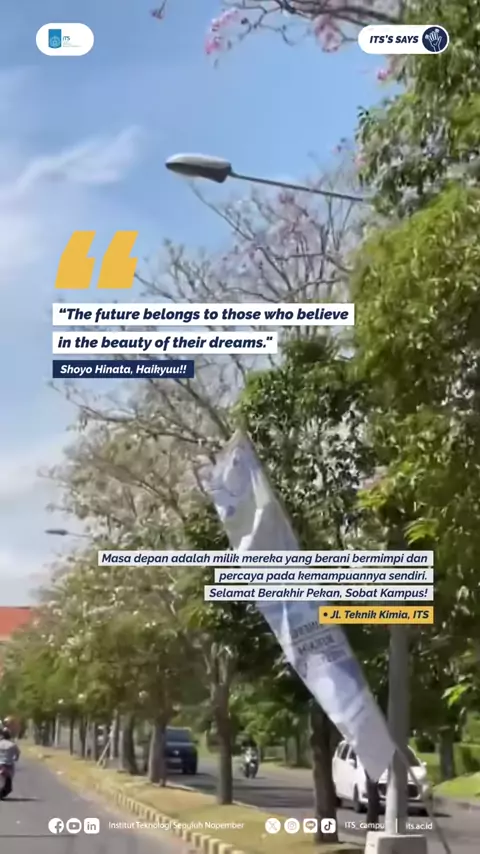 #ITSSays ✨ "The future belongs to those who believe in the beauty of their dreams." – Shoyo Hinata, Haikyuu!! Masa depan adalah milik mereka yang berani bermimpi dan percaya pada kemampuannya sendiri💪🔥 Selamat Berakhir Pekan, Sobat Kampus! Semoga harimu terus penuh dengan semangat✨#ITSSurabaya#ITSCampus#Quotes#Vivat#Haikyuu#HinataShoyo