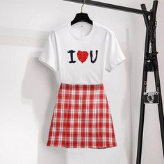 Cute Letter Tee+plaid Skirt P11158