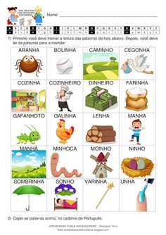 Treino ortográfico - Atividades com palavras que têm NHA - NHE - NHI - NHO - NHU