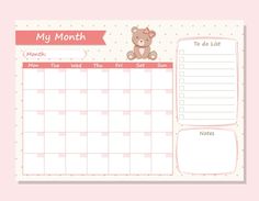 Premium Vector | My month planner cute she bear