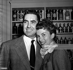 1950, A portrait of American film star Tyrone Power and wife Linda...