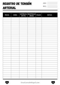 Plantillas registro de tensión arterial ❤️ para imprimir