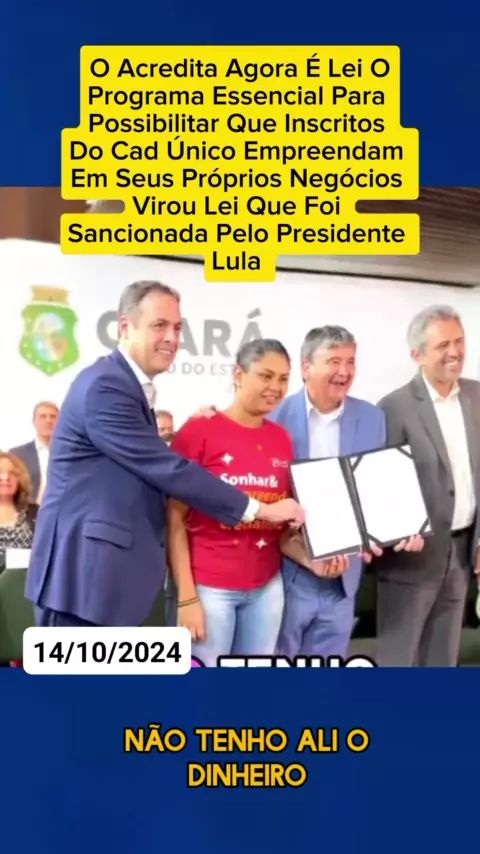 O ACREDITA AGORA É LEI O PROGRAMA ESSENCIAL PARA POSSIBILITAR QUE ISCRITOS DO CAD ÚNICO EMPREENDEM E INVISTAM EM SEUS PRÓPRIOS NEGÓCIOS VIROU LEI QUE FOI SANCIONADA PELO PRESIDENTE LULA #viraliza #projetotopkwai #premiokwai2024