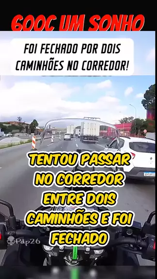 motoqueiro tenta passar entre dois caminhões e acaba se dando mal