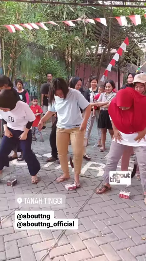 Setelah anak-anak, giliran ibu-ibu dari RW07 Kelurahan Tanah Tinggi, Kota Tangerang, ikutan lomba-lomba seru dari memasukkan sedotan ke botol, seret terong, dan estafet sarung, Kamis (17/8/2023) sore π #abouttng #tangerang #merdeka #17agustus #lomba