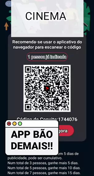 baixe o app CINEMA! Escaneie o QR CODE para baixar o APP! Ao recomendar para outras pessoas, você podera assistir sem anúncios! #APP #qrcode #print #cinema #semanuncios