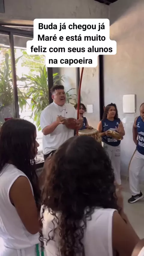 Buda já chegou já Maré e está muito feliz com seus alunos na capoeira #LucasBuda