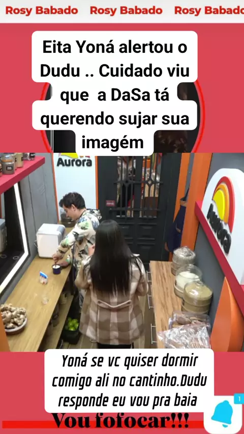 Eita Yoná alertou o Dudu .. Cuidado viu que a DaSa tá querendo sujar sua imagém Yoná se vc quiser dormir comigo ali no cantinho.Dudu responde eu vou pra baia