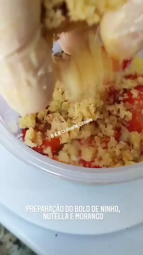 Preparação do Bolo de Baunilha com Ninho, Nutella e Morango #bebculinariacaseira
