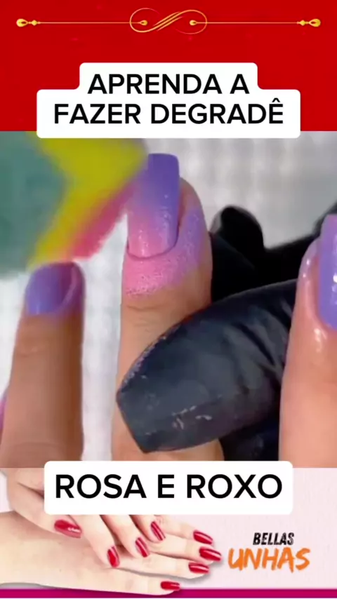 APRENDA A FAZER DEGRADÊ ROSA E ROXO #Unhas #esmalte # #manicure #manicure #unhadecorada