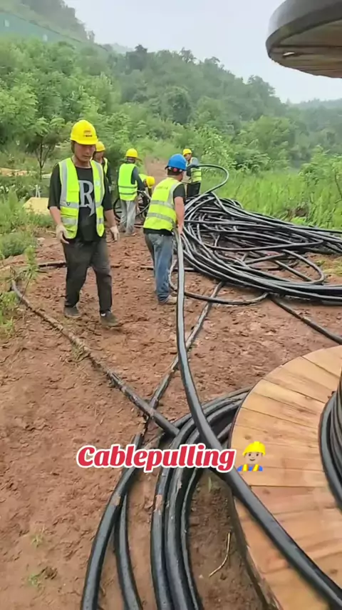 There is good scenery in the mountains, and there are scenes of our power workers working hard, photovoltaic cables are being laid #cablepulling #cablelaying #cablelayinginnovation #CableConveyorMachine #cablemachine