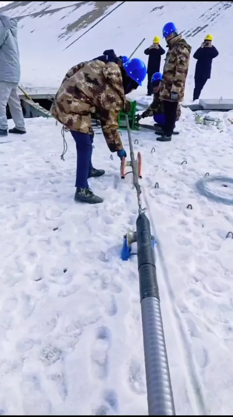 Even in heavy snowfall, cable laying construction must continue. Using a cable pulling machine makes the process faster and easier. βοΈππ» #CableConveyorMachine #cableconveyor #cablepulling #cablelaying #cableconveyor