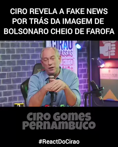 Ciro revela fakenews por trás da imagem de Bolsonaro cheio de farofa.
