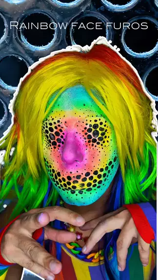 Resultado da Rainbow Face Furos ππ° #makeup #creativemakeup