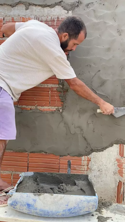 Reboco em parede de alvenaria #reboco #construção #viral