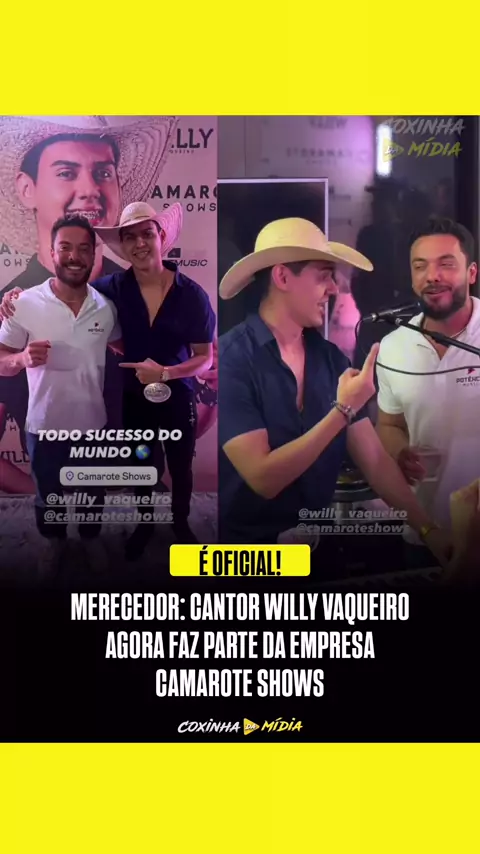 É OFICIAL! Cantor @willy_vaqueiro agora faz parte da empresa @camaroteshows merecedor demais .. 👏🏽🎶🤠🇧🇷 Siga: @coxinhadamidiadivulgacoes para receber as novidades. #Viral #reels #explore #viralvideos #coxinhadamidiadivulgacoes