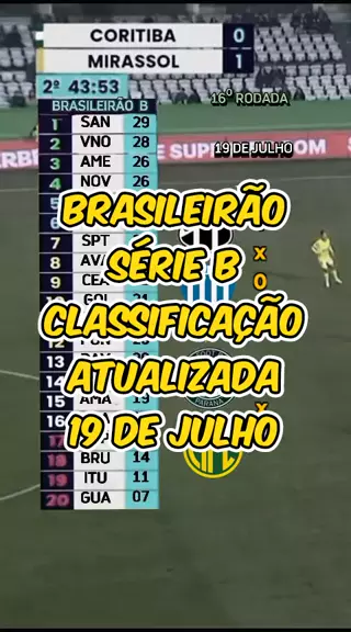Brasileirão 2024 Série B,l 16⁰ Rodada, resultados dos jogos do dia 19 de Julho e Classificação Atualizada. Ceara 1 x 0 Avaí/Coritiba 1 x 0 Mirassol. #Brasileirão2024 #futanalise #vocêsabia #20240719