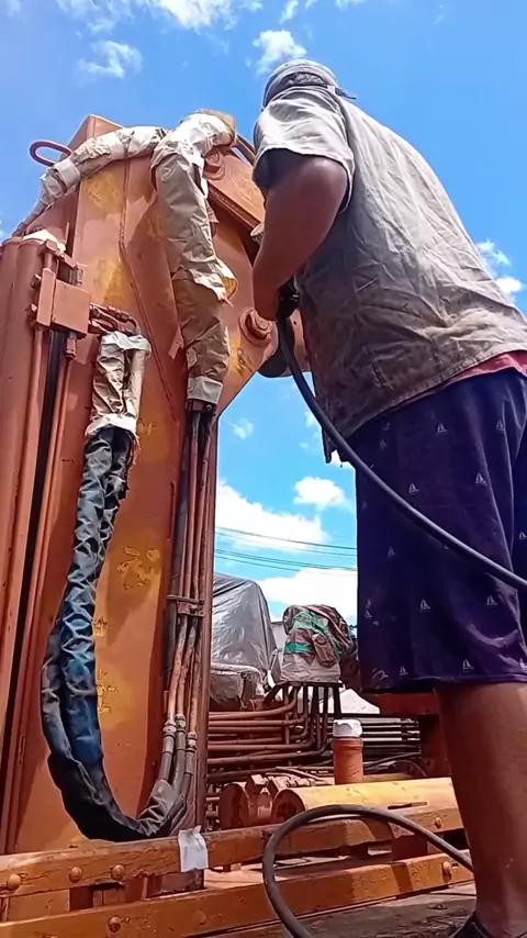 Retoque básico, banho de tinta . . (faltou a máscara, tive que usar a quebra galho) #operador #guindaste #pinturas #pinturaautomotiva #maisviews
