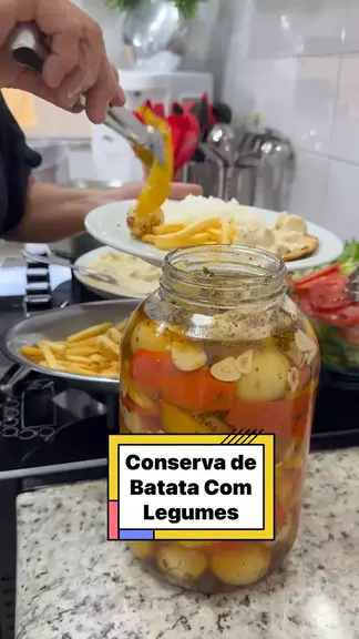Conserva de Batata com Legumes Ingredientes: 01 kg de batata bolinha 1/2 maço de couve-flor 02 pimentões amarelos 02 pimentões vermelhos 400 gramas de mini cebolas cruas Tempero: 700 ml de água 700 ml de vinagre de álcool 01 colher (sopa) de pimenta calabresa 01 colher (sopa) de orégano 06 dentes de alho cortados em lâminas 01 colher (sopa) de sal 1/2 xícara (chá) de azeite #receitas #amo #amocozinhar #deliciasdaeleni