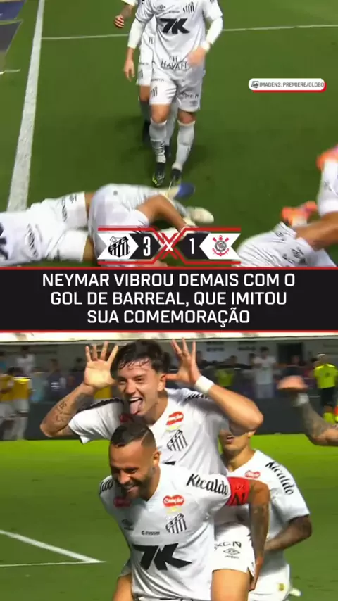 Neymar comemorou demais o gol marcado por Álvaro Barreal, que celebrou à la camisa 10 do Santos. 🎥: Premiere/Globo #Futebol #BETAPPNOBRASIL #santosxcorinthians #Neymar #brasileirão2025